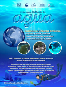 Académicos de la Facultad de Química en la Unidad de Química en Sisal, Yucatán, analizan los contaminantes generados en la Península de Yucatán. El Laboratorio de Ciencias Ambientales Costeras, donde se realizan estudios de monitoreo de contaminantes, ha detectado la presencia de contaminantes orgánicos persistentes y emergentes en el acuífero costero de Yucatán, como plaguicidas, hidrocarburos alifáticos y aromáticos, esteroles fecales, contaminantes volátiles y principios activos de productos empleados para el cuidado personal.